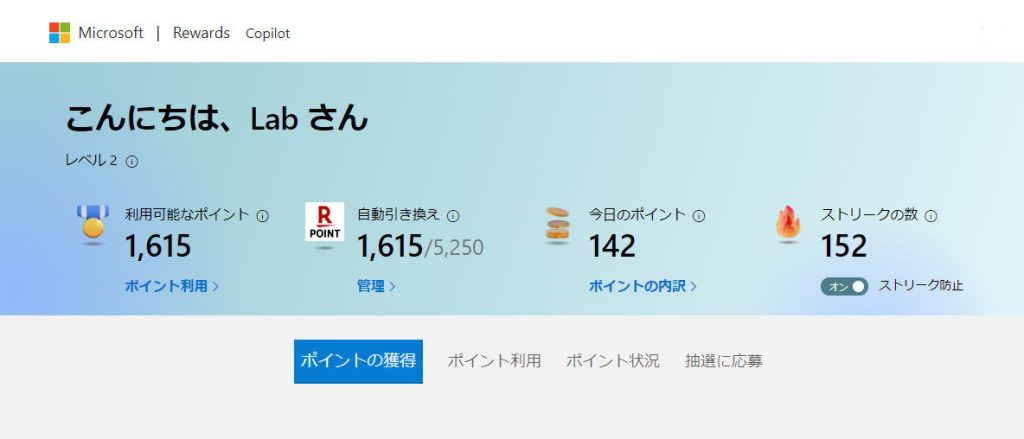 マイクロソフト リワードですが以前より使いやすくなり獲得する周期も速くなった感じです。