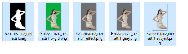 処理済みファイルを5つのパタンで出力します。