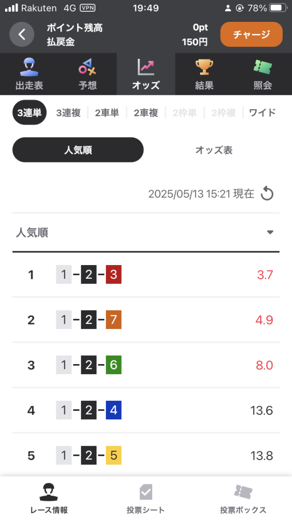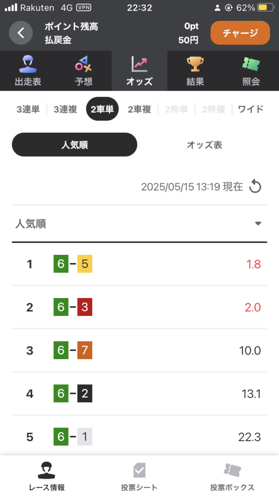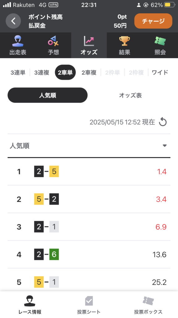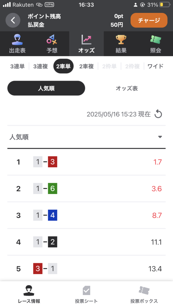 2車単は、トリガミになるため投票できません。
