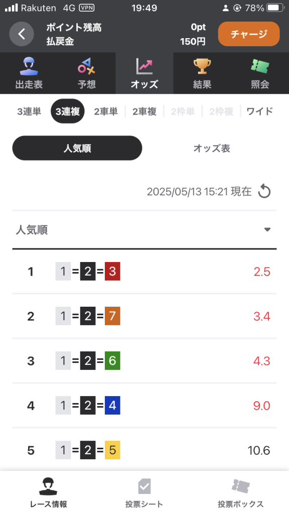 大垣競輪場 5R AI予想の自信度(★)3つですので、投票対象です。