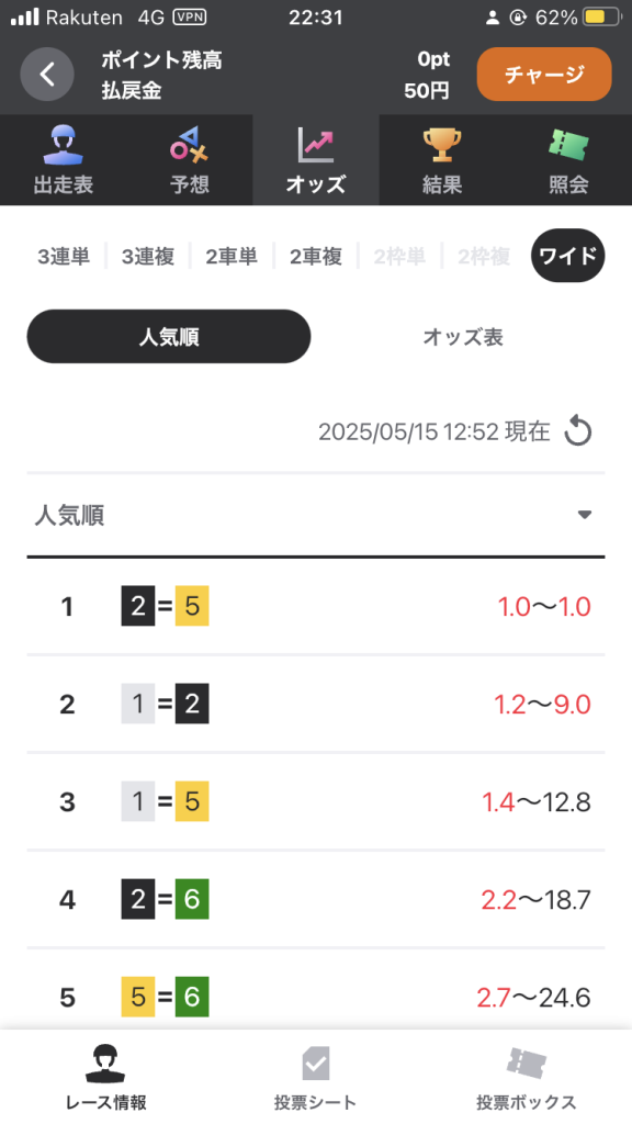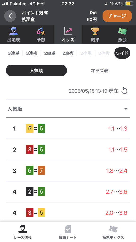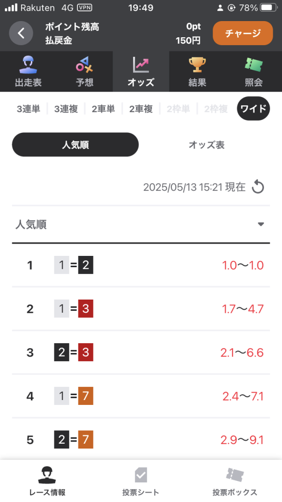 もし、この超・短期投資術を行う場合は、ルールに則るのは勿論ですが、初めのうちはワイドの買い目で確実にポイントを払戻金にしてください。