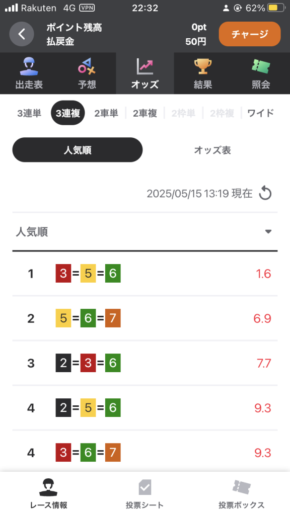 200pt使って、もし+60円ですと、3連複 1点買い(100pt)でも+30円ですから、ちょっと考えてしまいます。